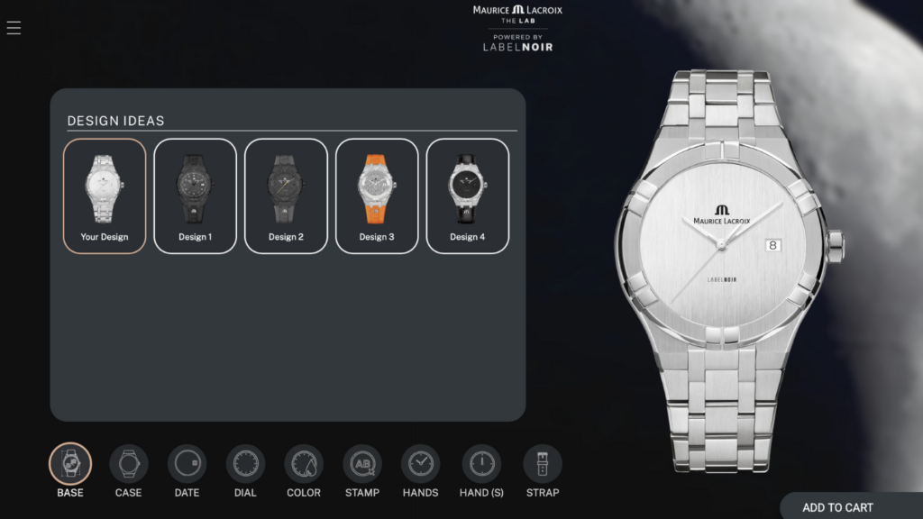 L’expérience commence dès le configurateur Maurice Lacroix x Label Noir, où tout semble pensé pour laisser place à la créativité.
